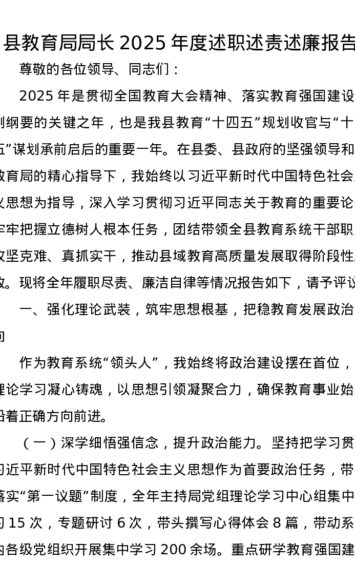 县教育局局长2025年度述职述责述廉报告