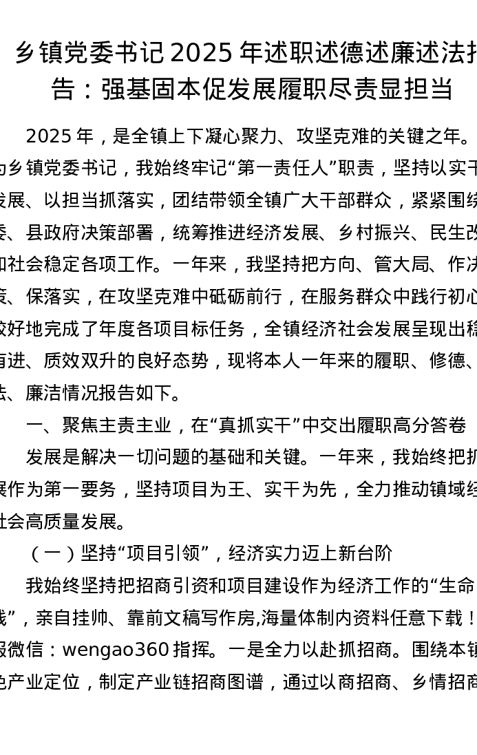 乡镇党委书记2025年述职述德述廉述法报告:强基固本促发展 履职尽责显担当