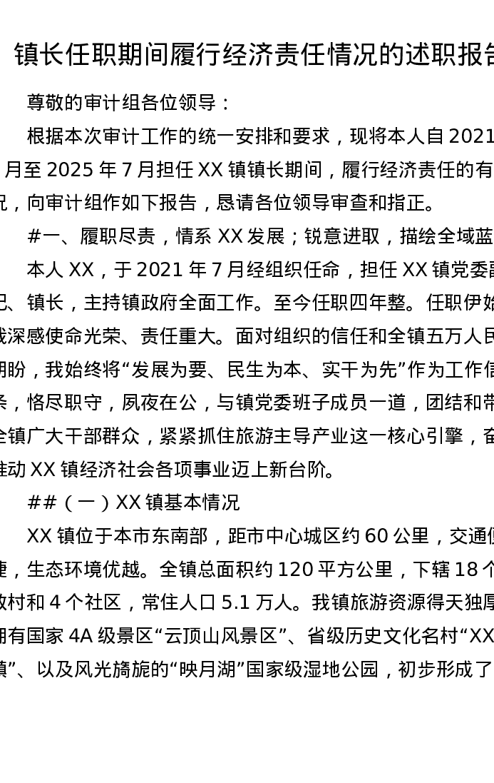 镇长任职期间履行经济责任情况的述职报告
