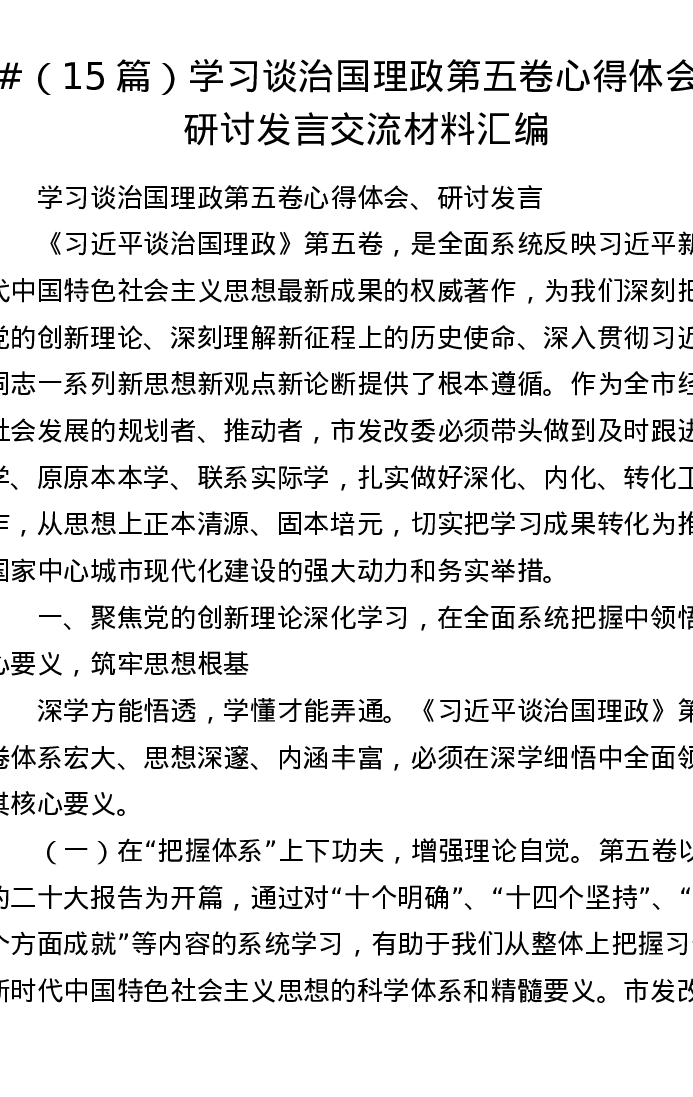 汇编:学习谈治国理政第五卷心得体会、研讨发言交流材料15篇
