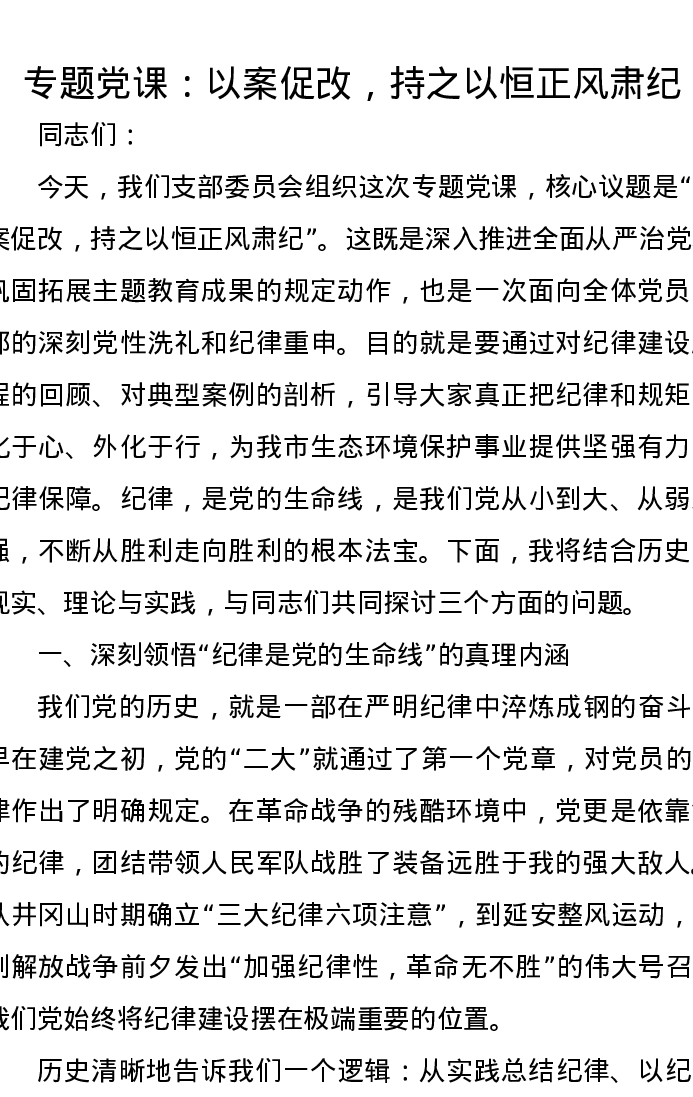 专题党课讲稿:以案促改,持之以恒正风肃纪