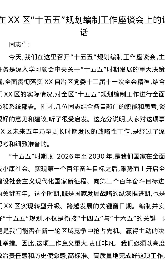 在XX区“十五五”规划编制工作座谈会上的讲话
