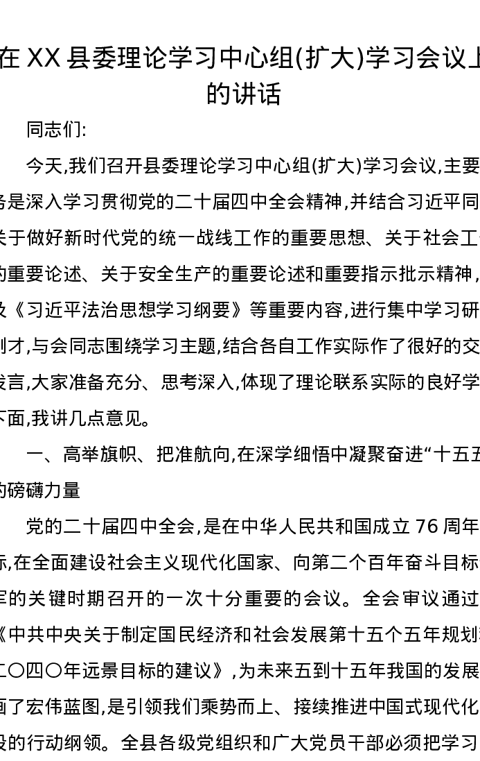 在XX县委理论学习中心组(扩大)学习会议上的讲话