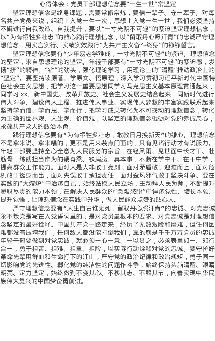 20220124心得体会:党员干部理想信念要“一生一世”常坚定