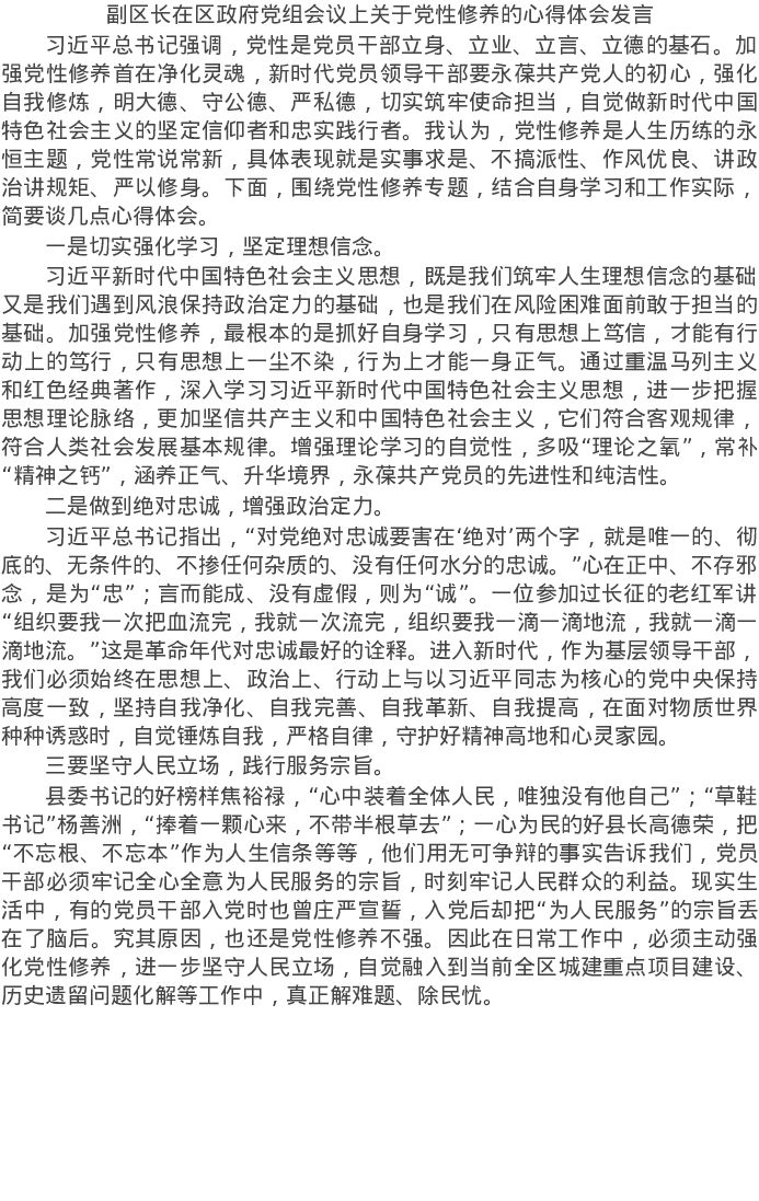 20220126副区长在区政府党组会议上关于党性修养的心得体会发言