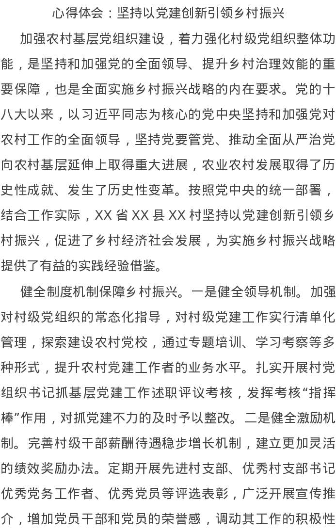20220206心得体会:坚持以党建创新引领乡村振兴