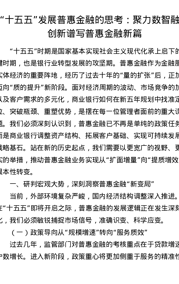 “十五五”发展普惠金融的思考:聚力数智融合创新 谱写普惠金融新篇