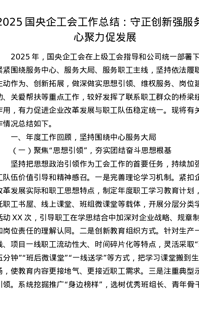 2025国央企工会工作总结:守正创新强服务 凝心聚力促发展