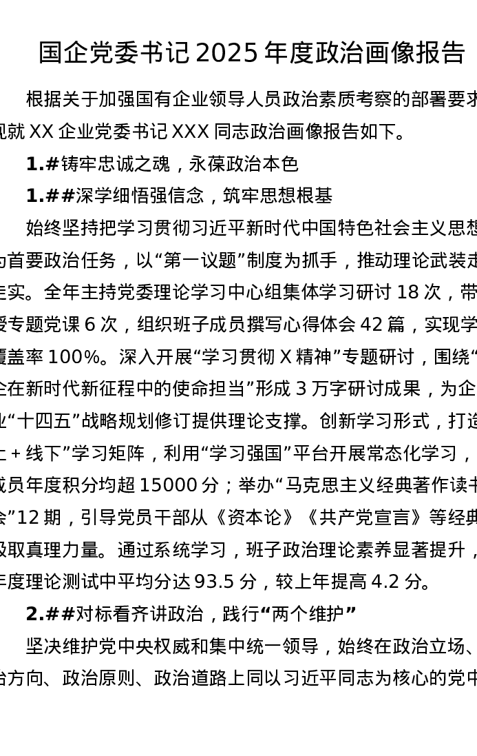 国企党委书记2025年度政治画像报告