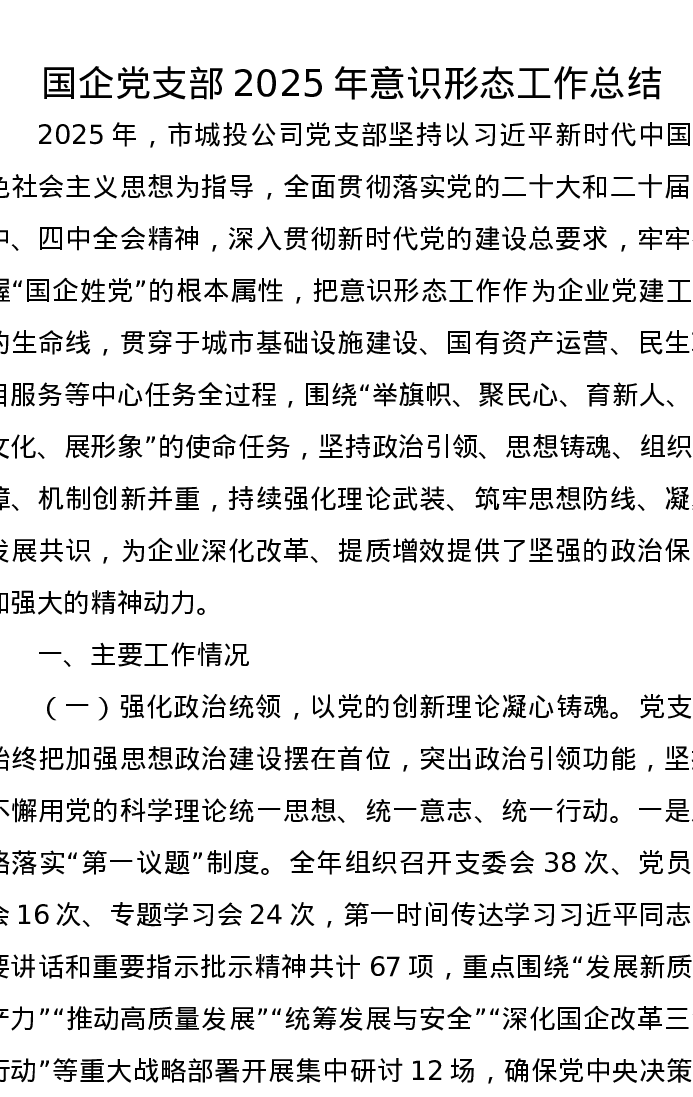 国企党支部2025年意识形态工作总结