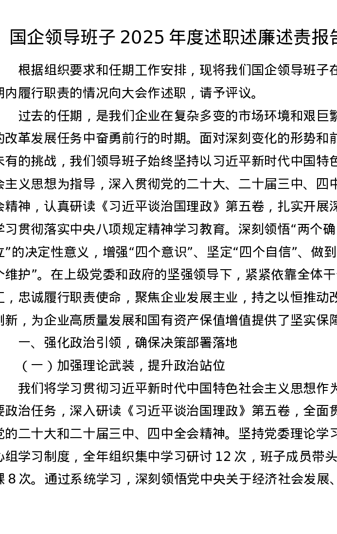 国企领导班子2025年度述职述廉述责报告