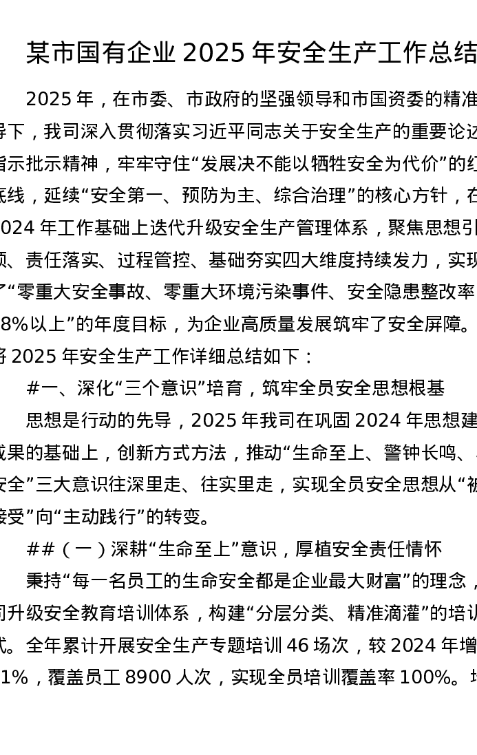 某市国有企业2025年安全生产工作总结(8740字)
