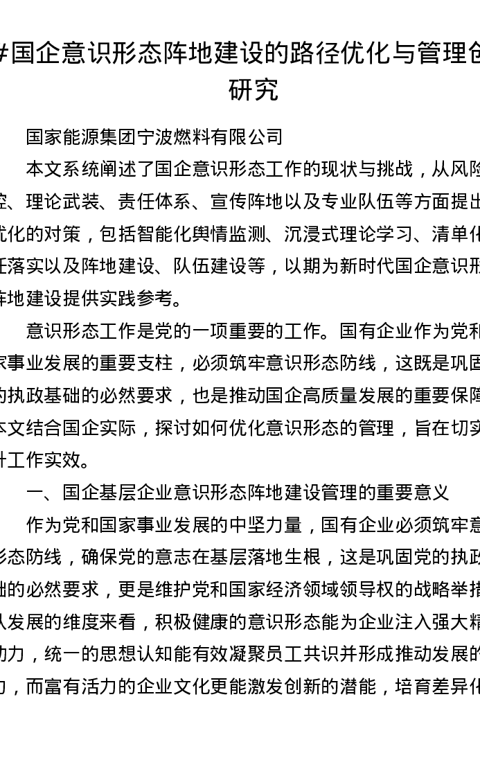 调研报告:国企意识形态阵地建设的路径优化与管理创新研究