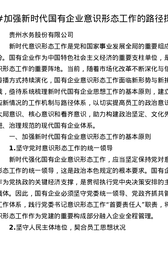调研报告:加强新时代国有企业意识形态工作的路径探究