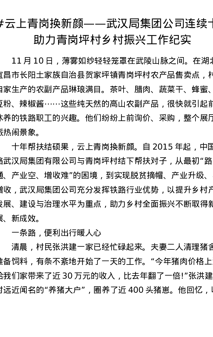 云上青岗换新颜——武汉局集团公司连续十年助力青岗坪村乡村振兴工作纪实