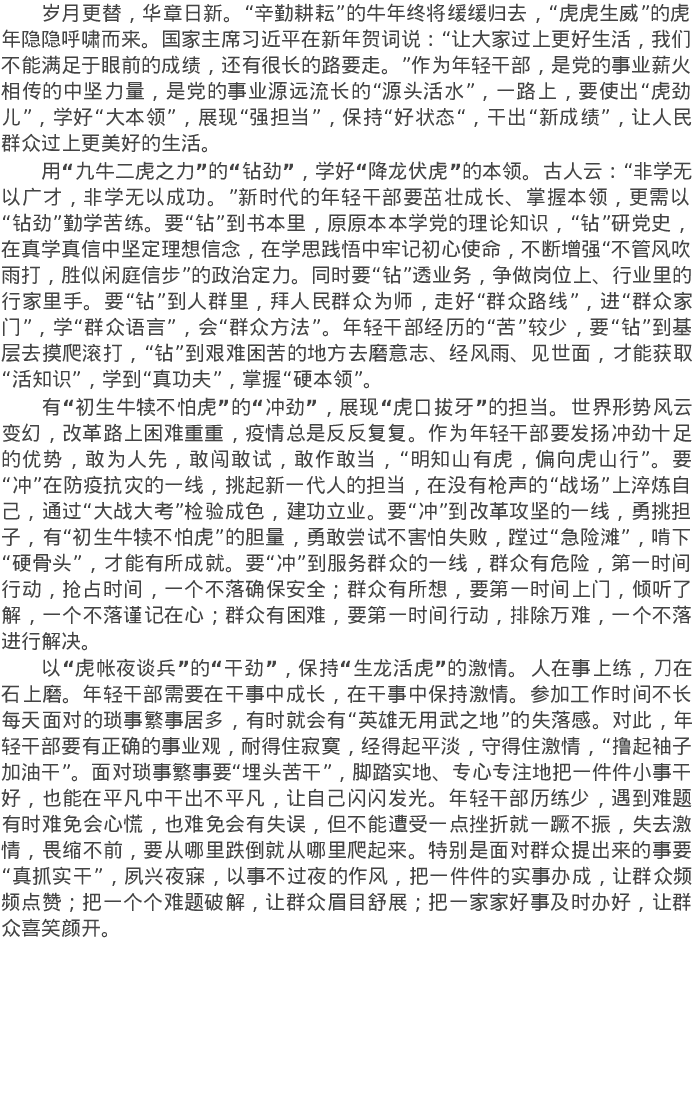 20220221心得体会:年轻干部请多点“虎劲儿”