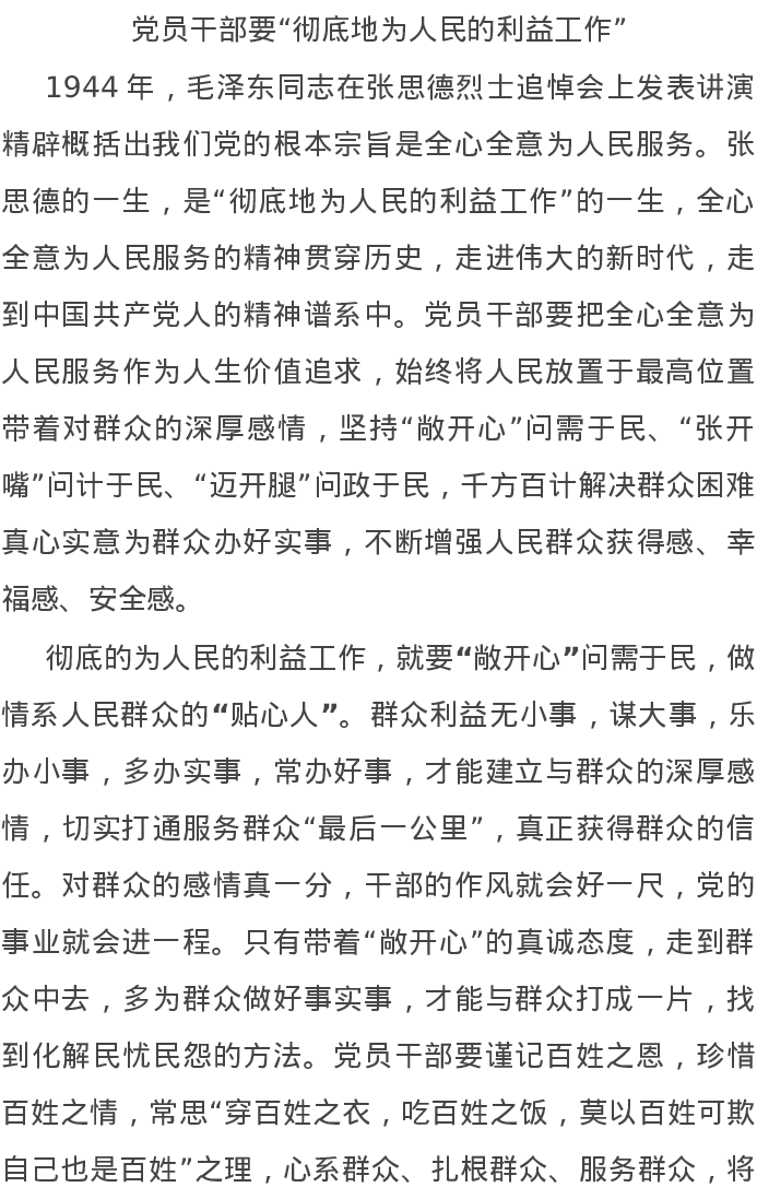 20220222心得体会:党员干部要“彻底地为人民的利益工作”