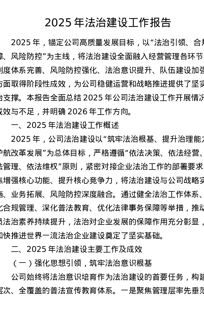2025年法治建设工作报告