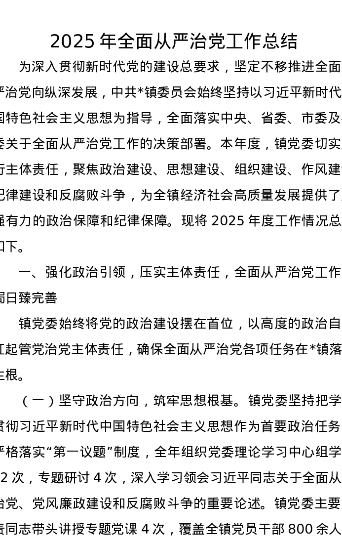 2025年全面从严治党工作总结