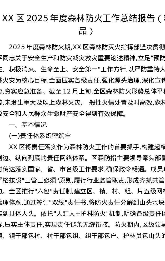XX区2025年度森林防火工作总结报告