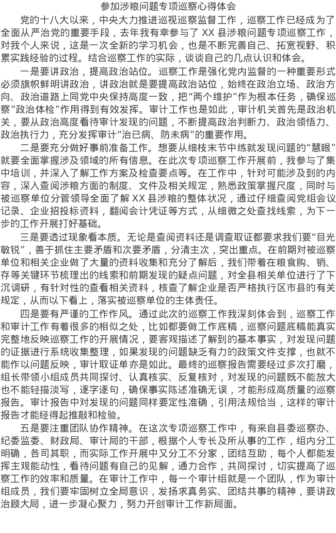 20220308参加涉粮问题专项巡察心得体会