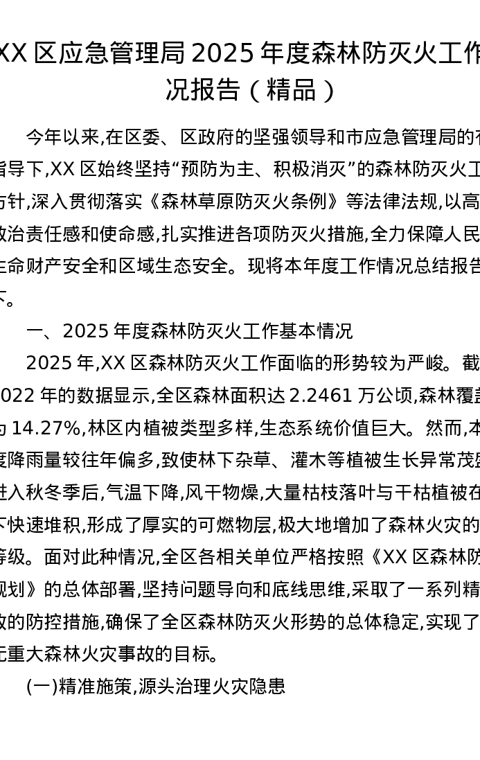 XX区应急管理局2025年度森林防灭火工作情况报告