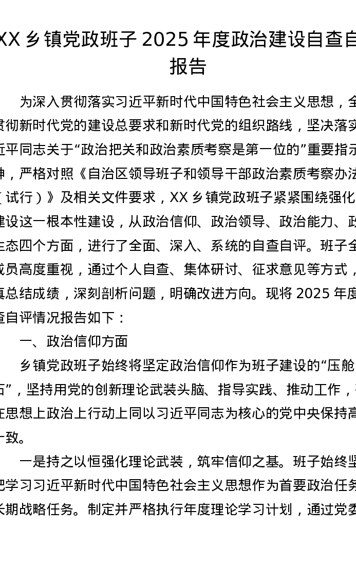 XX乡镇党政班子2025年度政治建设自查自评报告(6192字)