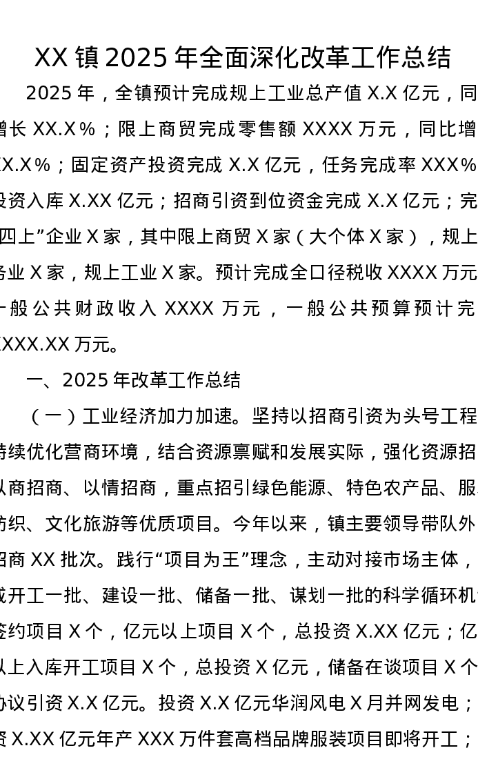 XX镇2025年全面深化改革工作总结