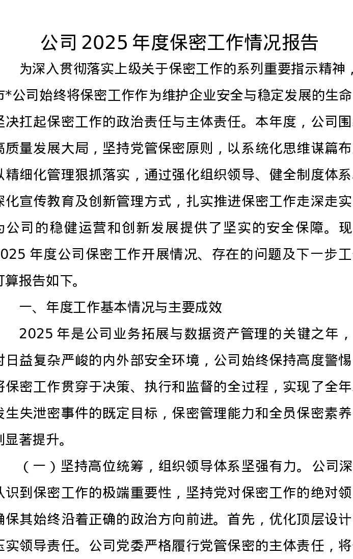 公司2025年度保密工作情况报告