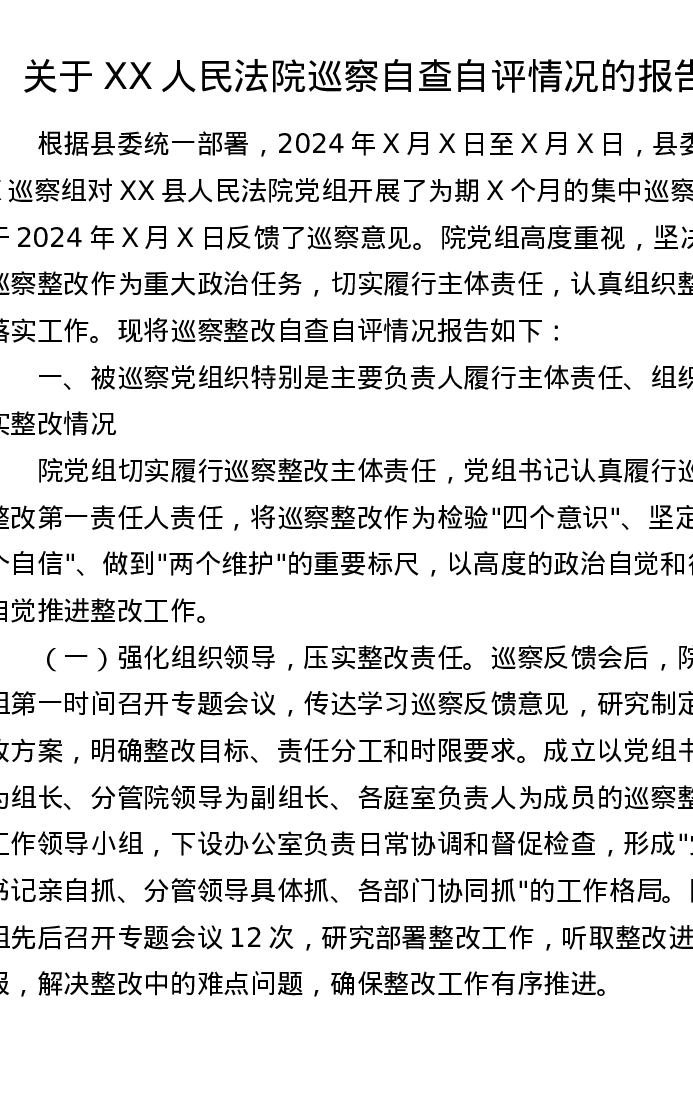 关于XX人民法院巡察自查自评情况的报告(3576字)
