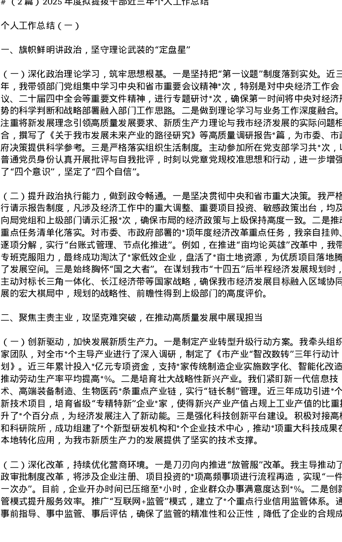 汇编:2025年度拟提拔干部近三年个人工作总结2篇