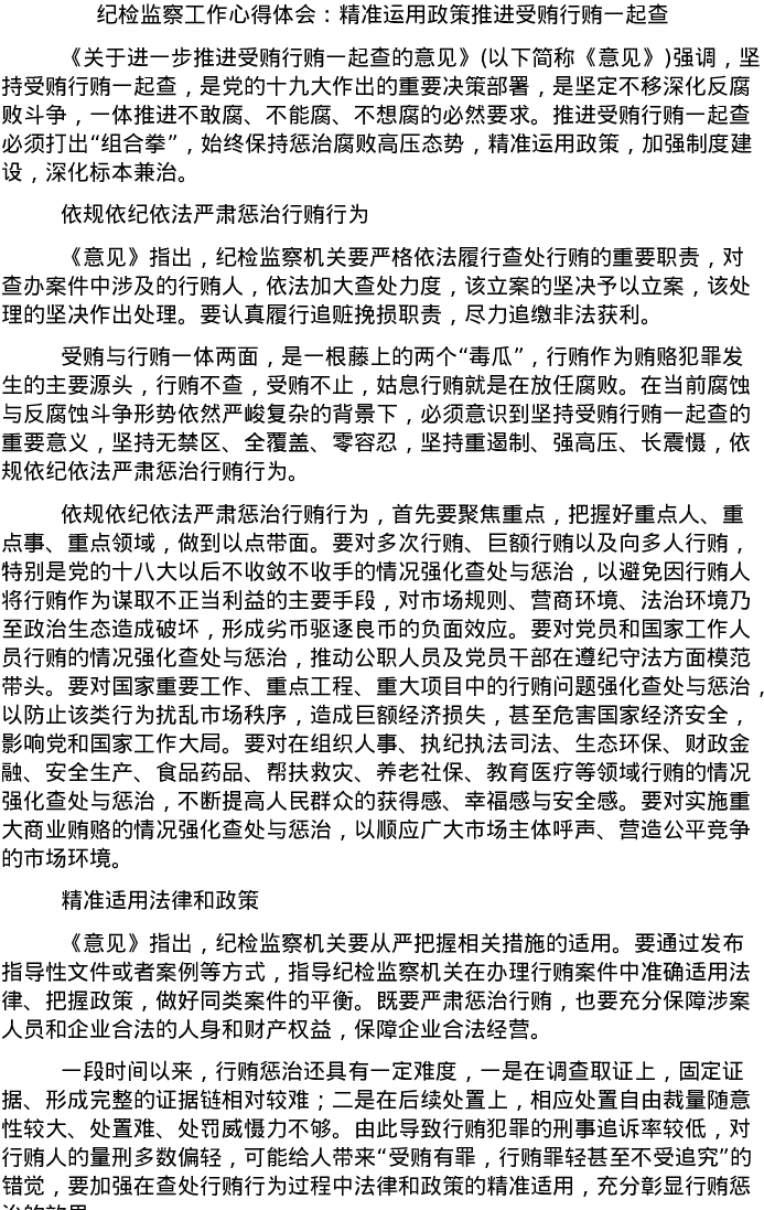 20220322纪检监察工作心得体会:精准运用政策推进受贿行贿一起查
