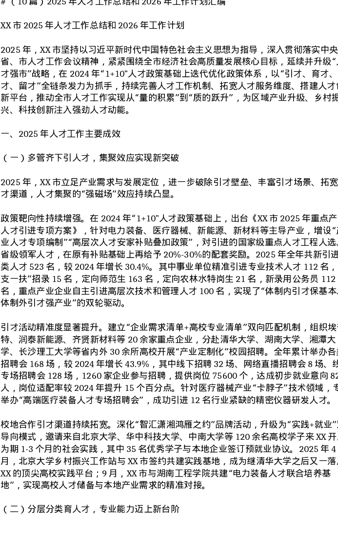 汇编:2025年人才工作总结和2026年工作计划10篇
