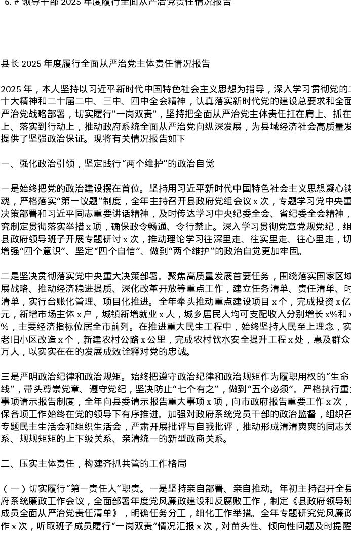 汇编:领导干部2025年度履行全面从严治党责任情况报告6篇