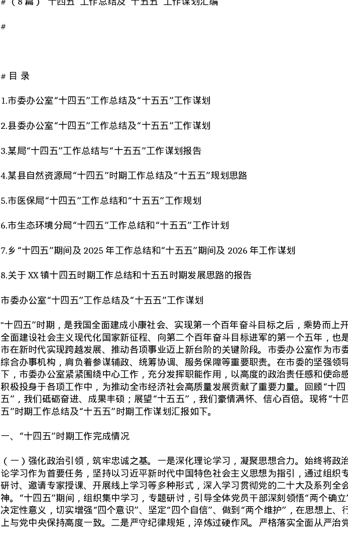 汇编:十四五工作总结及十五五工作谋划汇编10篇