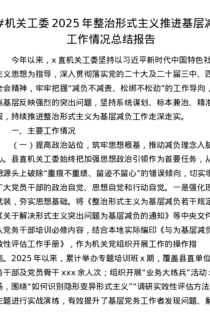 机关工委2025年整治形式主义推进基层减负工作情况总结报告