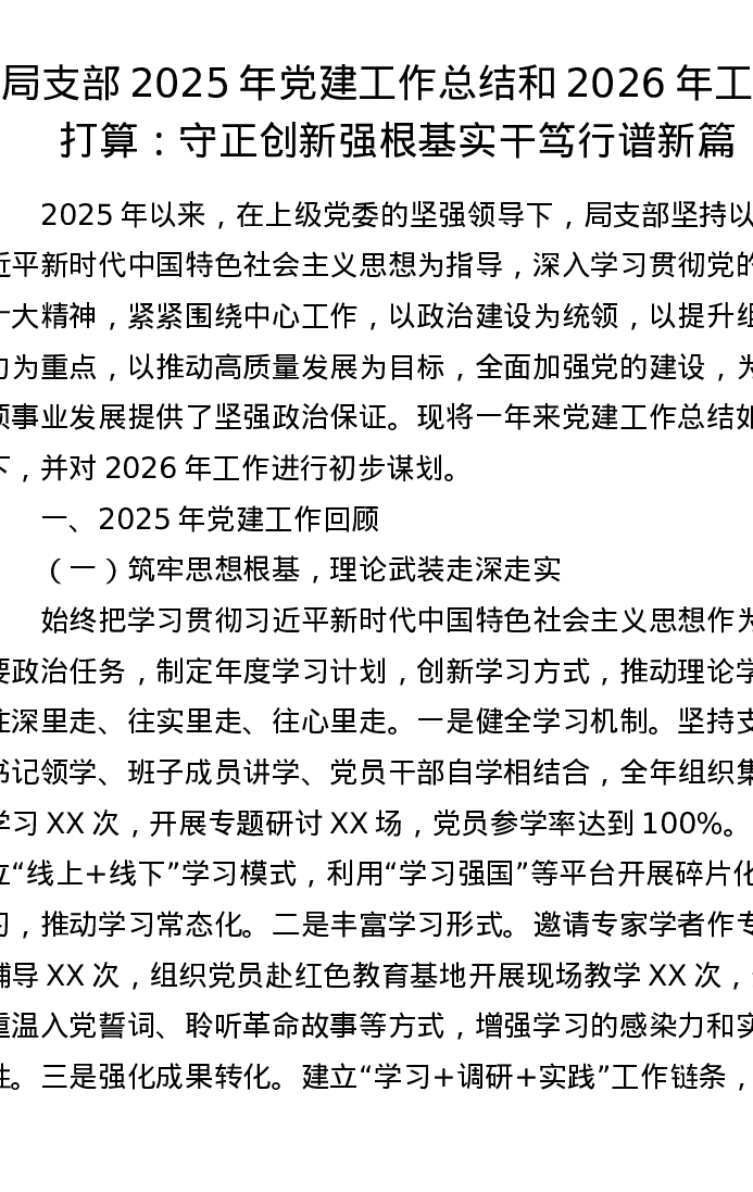 局支部2025年党建工作总结和2026年工作打算:守正创新强根基 实干笃行谱新篇