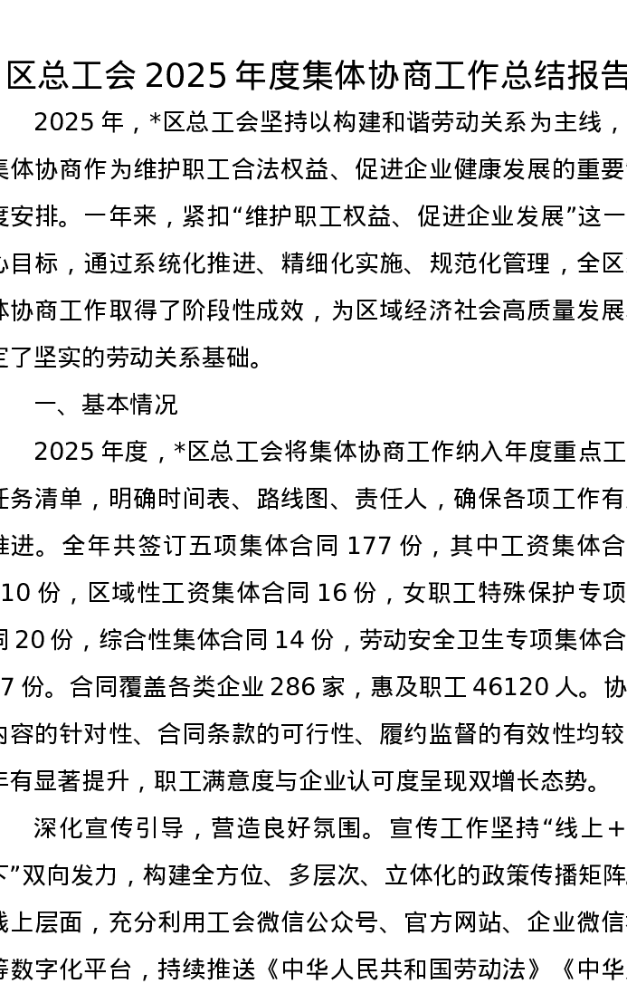区总工会2025年度集体协商工作总结报告