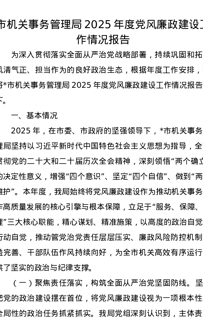 市机关事务管理局2025年度党风廉政建设工作情况报告