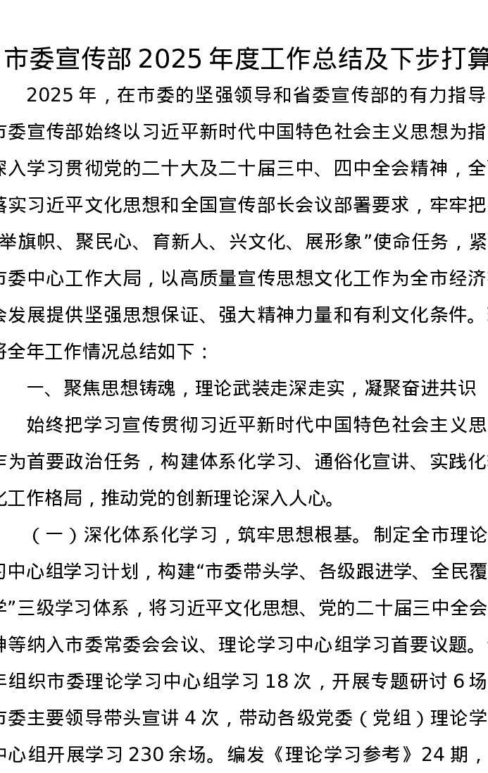 市委宣传部2025年度工作总结及下步打算