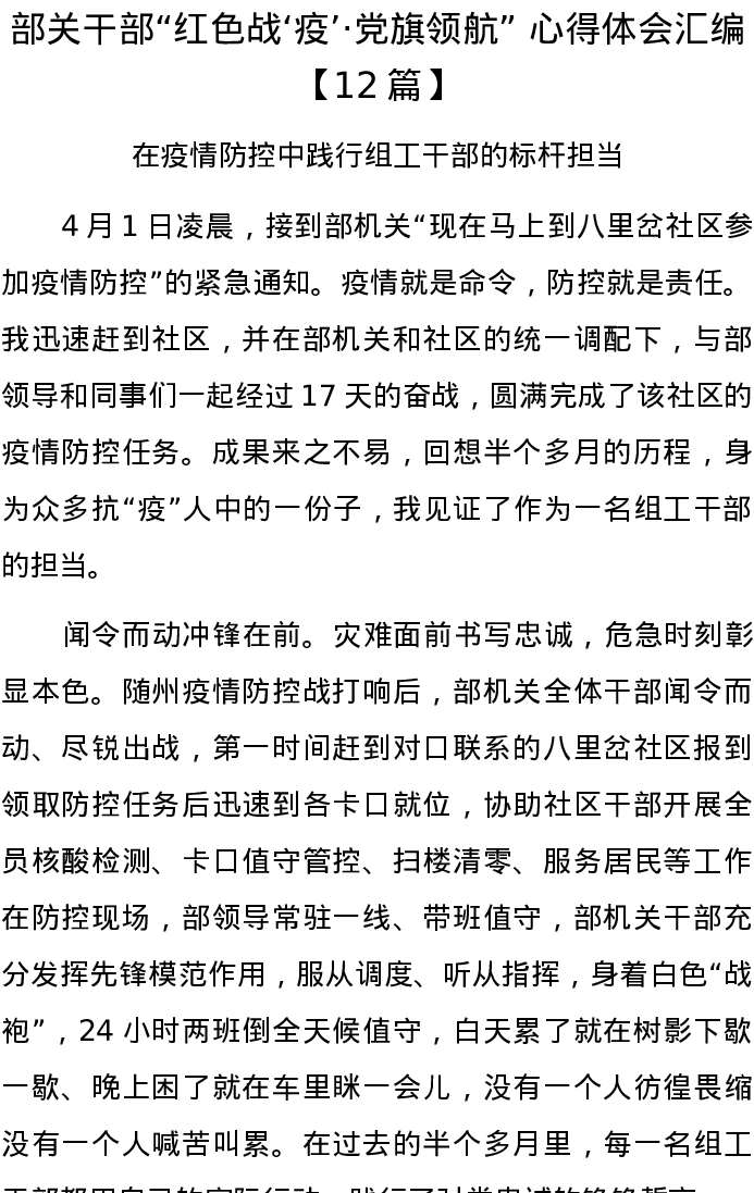 20220502部关干部“红色战‘疫’·党旗领航” 心得体会汇编【12篇】