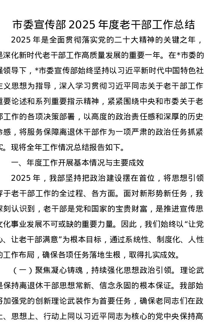 市委宣传部2025年度老干部工作总结