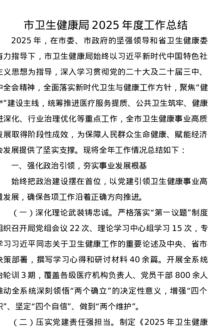 市卫生健康局2025年度工作总结