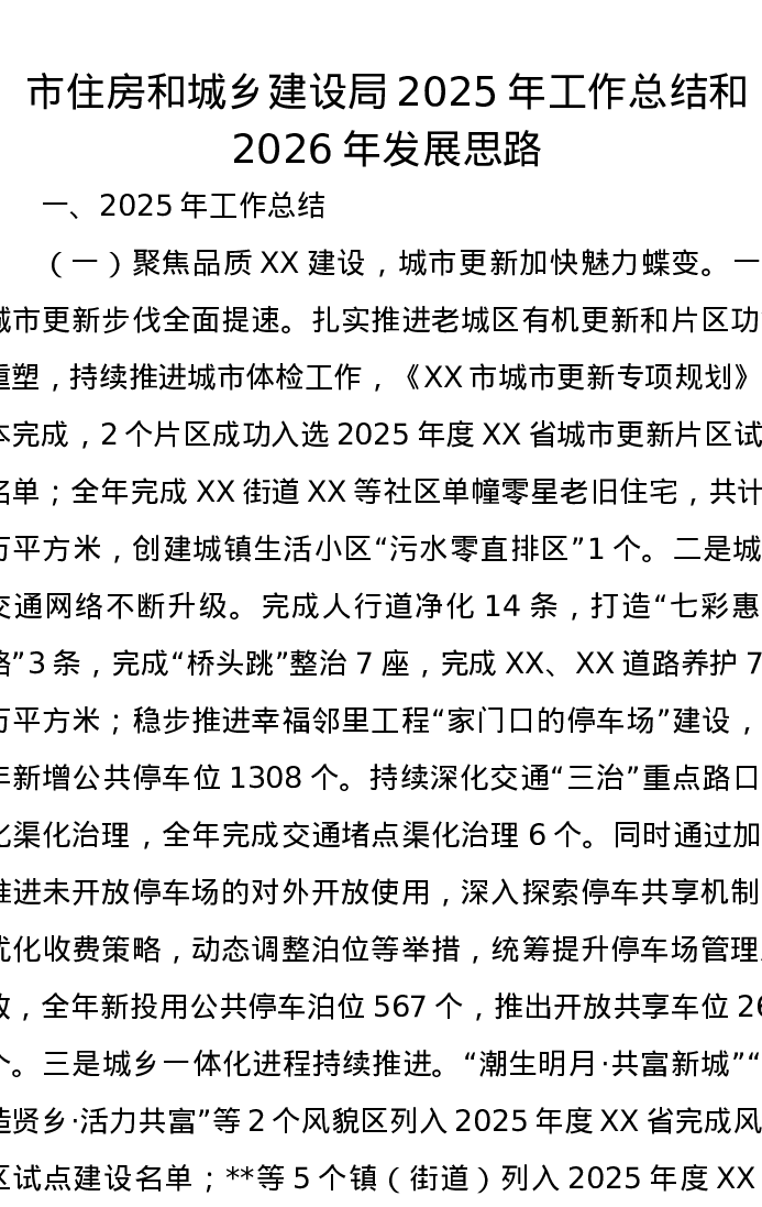 市住房和城乡建设局2025年工作总结和2026年发展思路