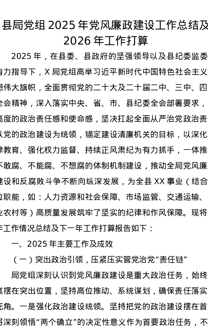 县局党组2025年党风廉政建设工作总结及2026年工作打算