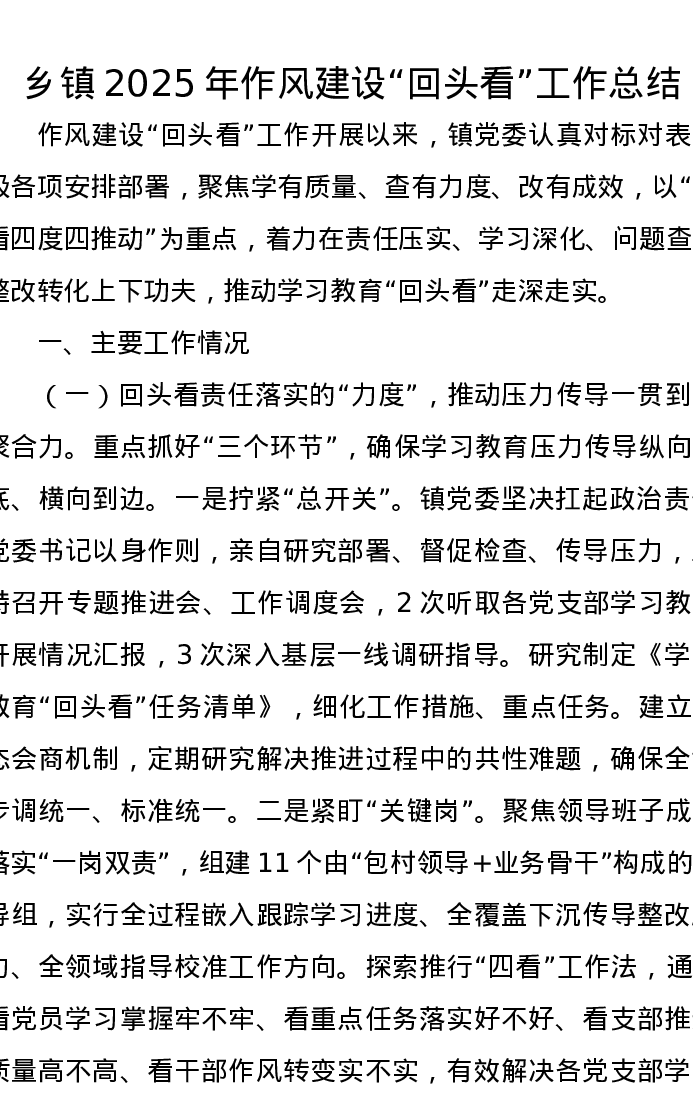 乡镇2025年作风建设回头看工作总结