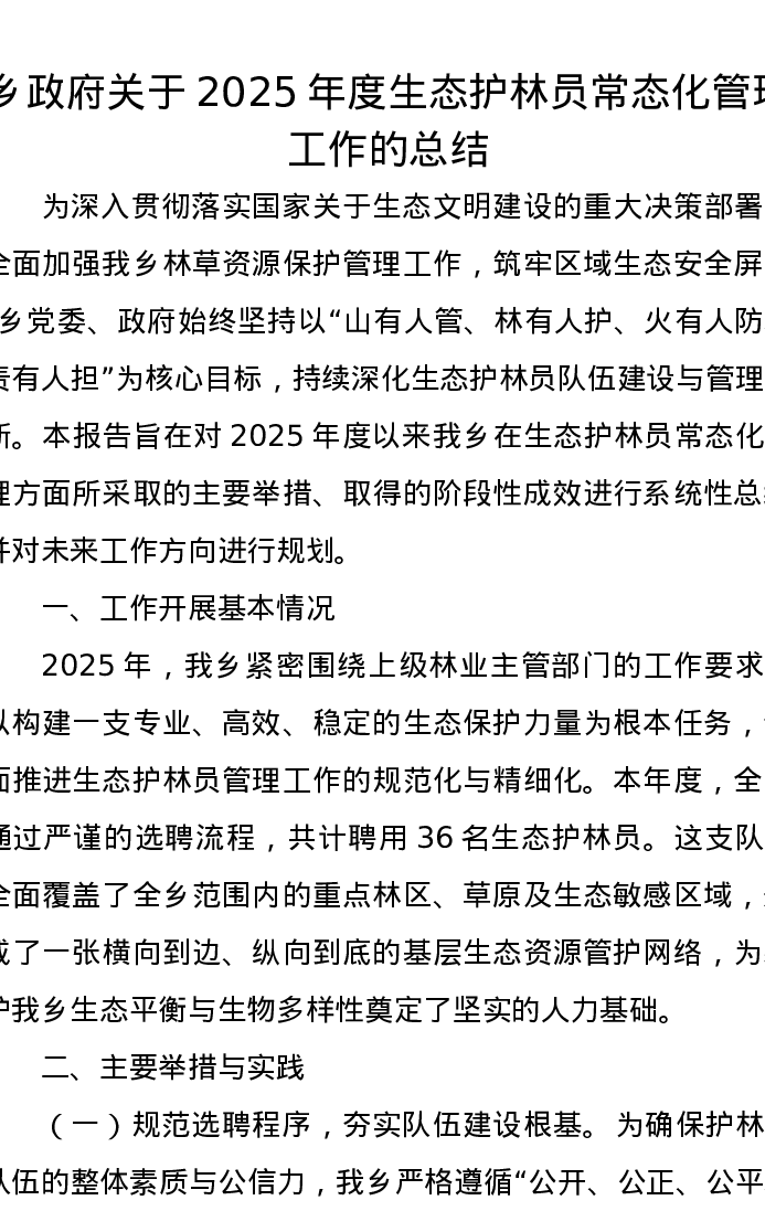 乡政府关于2025年度生态护林员常态化管理工作的总结