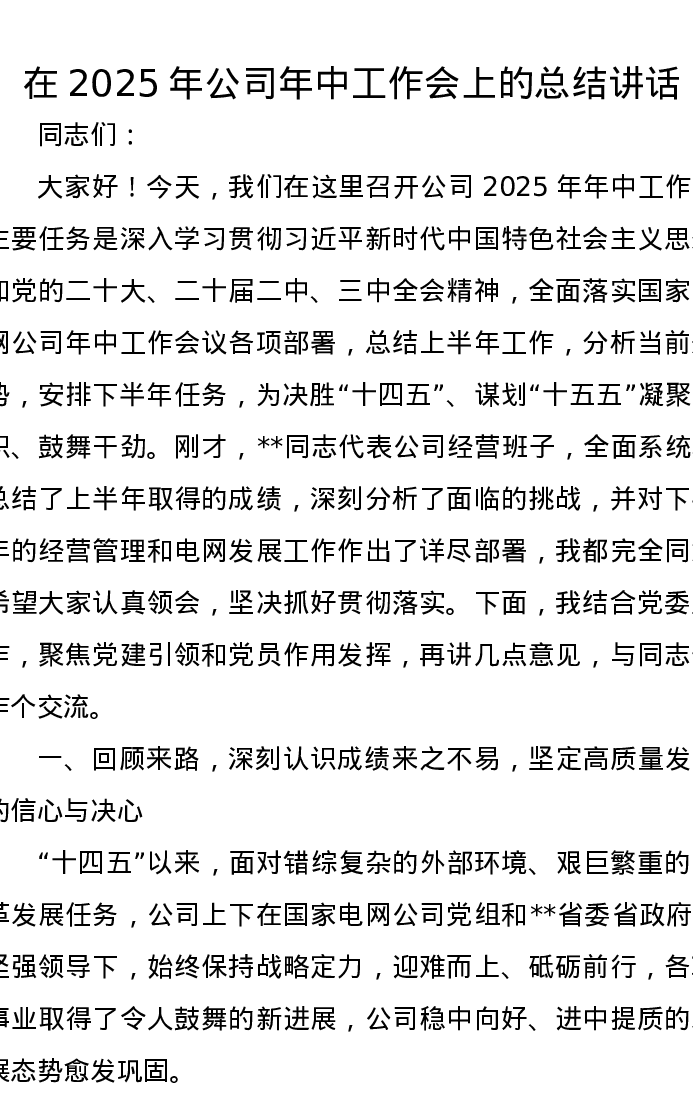 在2025年公司年中工作会上的总结讲话