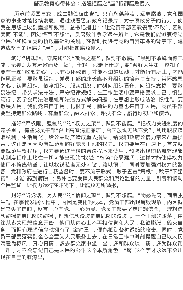 20220712警示教育心得体会:搭建拒腐之“屋”抵御腐败侵入