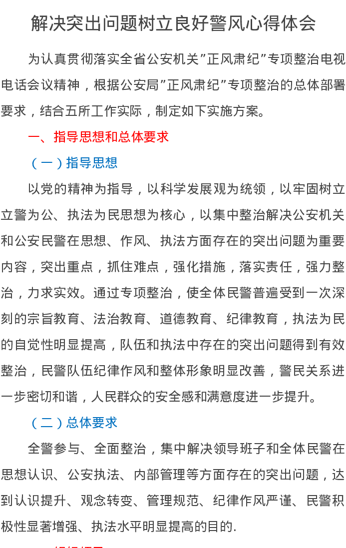 20220714心得体会:解决突出问题树立良好警风心得体会